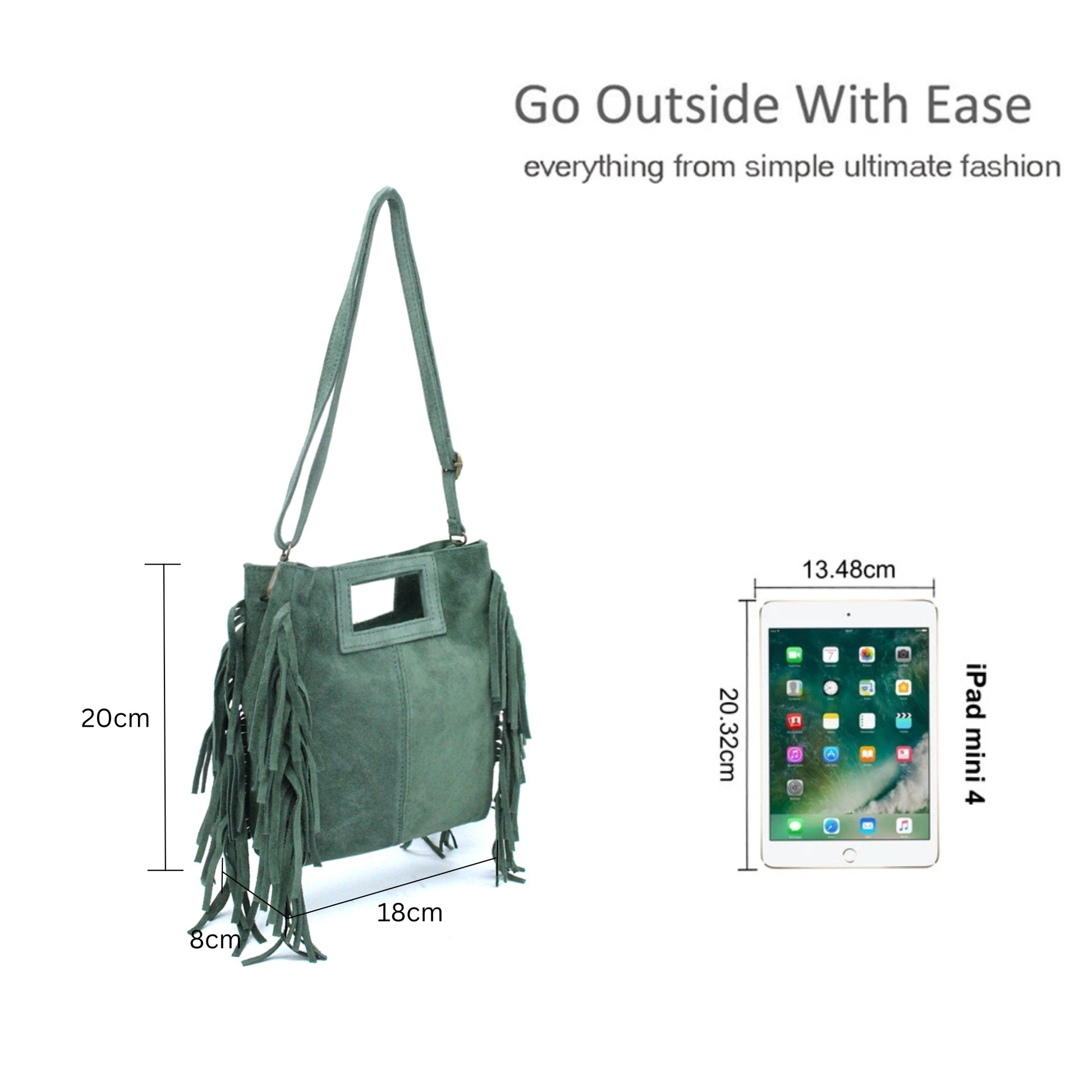 Genuine Italian Suede Crossbody Bag with Boho Fringe Design