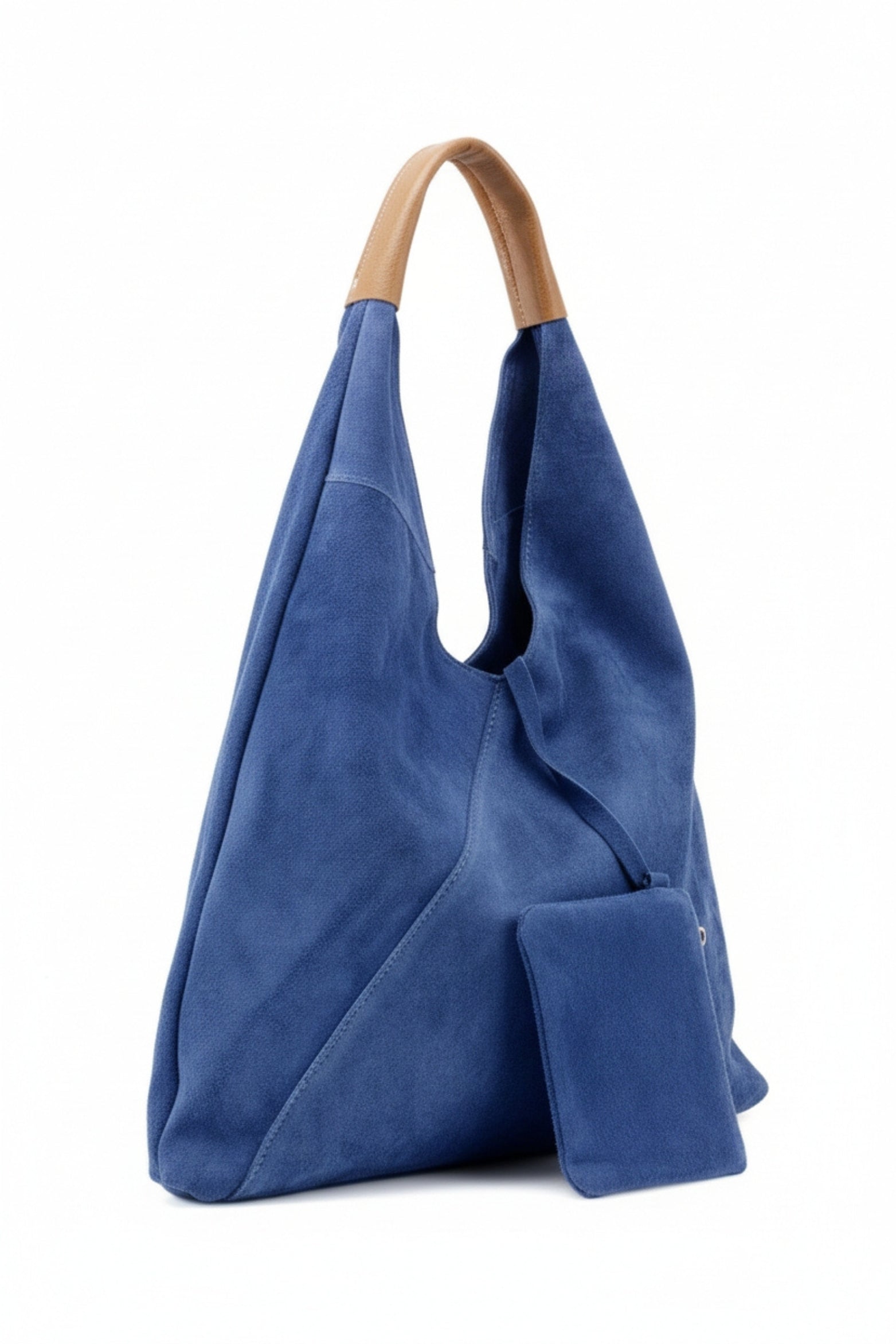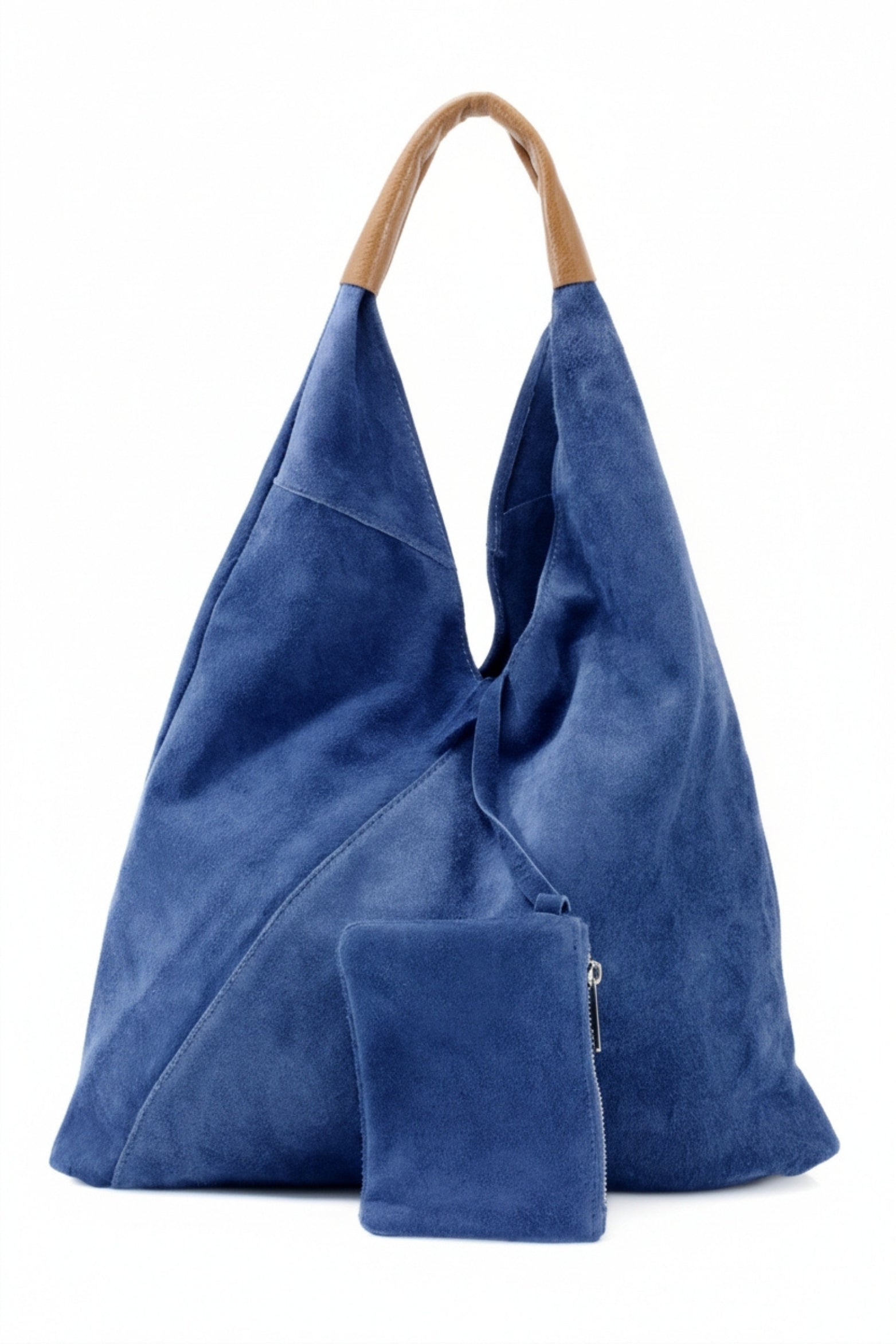 Italian Suede Leather Hobo Shoulder Bag with Purse Attached